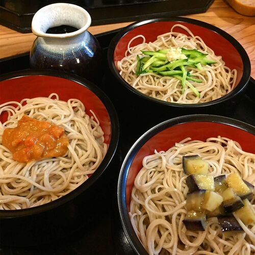 当店の目玉メニュー「はやかわ割子」。 三段重ねのそばに、今の季節のこの地域らしい具材が3種ついて、3つの味を楽しめるお得な蕎麦。 そのはやかわ割子が、第四弾!夏バージョンになりました。 本日(7/18)からご提供しております。 夏のはやかわ割…