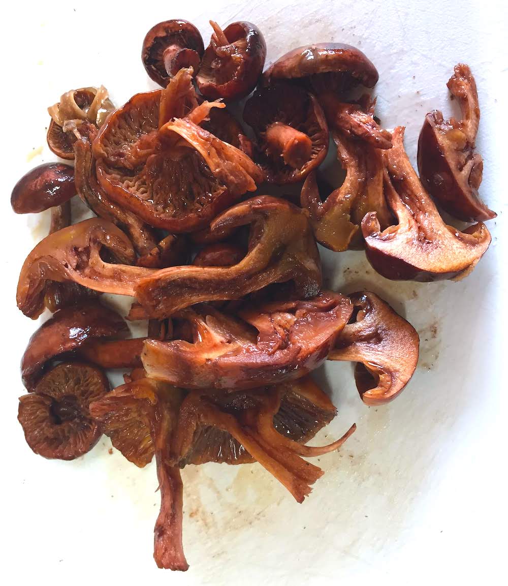 2019-10-29 ヒメサクラシメジの山椒煮 おすくに きのこ料理 秋の料理 山のつまみ ヒメサクラシメジが採れたので、山椒煮を作ってみました。このきのこ、一見、サクラシメジにも見えますが、サクラシメジより、小ぶりで、色が濃いのが特徴です。酒の肴にぴったりの一品ができました。