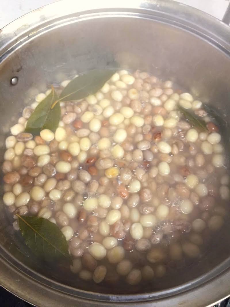 まずは、西山インゲン(今回は量が足りなかったので白インゲンも一緒に)を柔らかくなるまで煮ます。