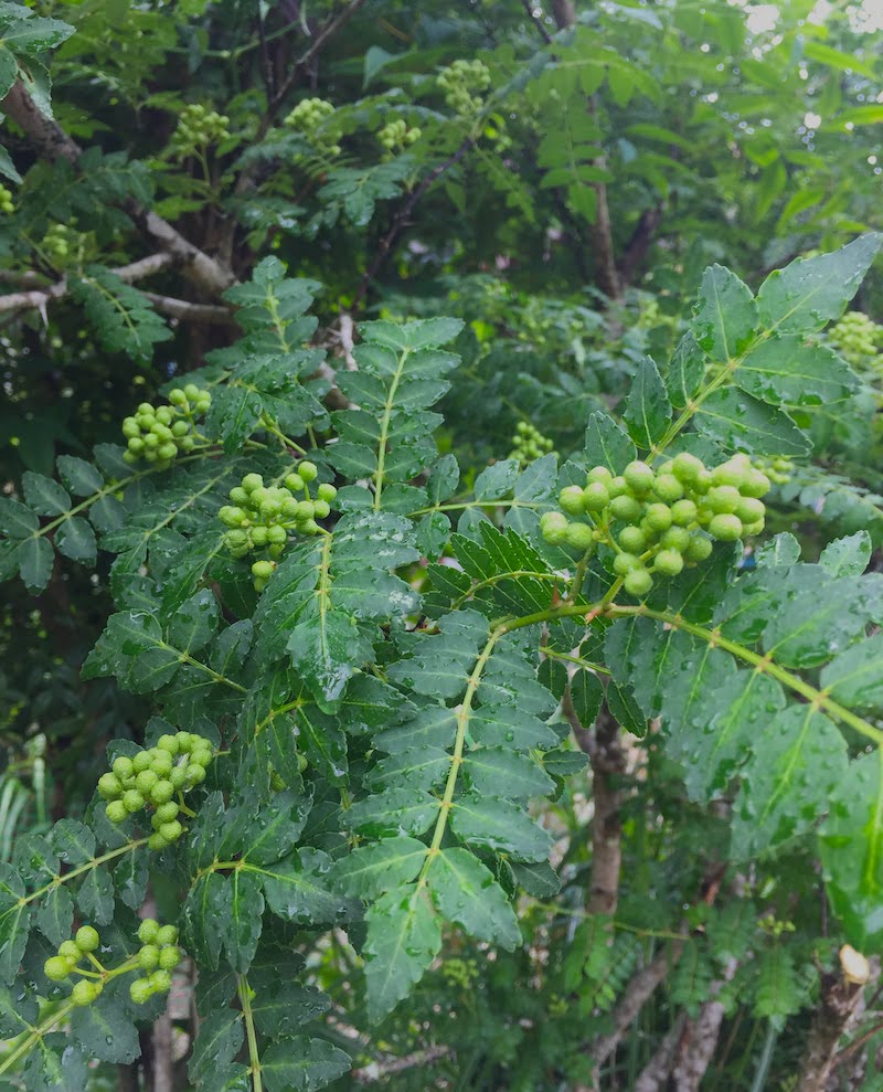 2021-05-12 実山椒の収穫 おすくに 山菜、野草料理 山の暮らし 春の料理 夏の食材調達 春の食材調達 山椒の実が大きくなってきました。今日は半日かけて収穫作業。 剪定も兼ねて、実のついた枝を切り落とします。 切り落とすまでは結構早いのですが、そこから実を外す作業が、棘も痛くてけっこう大変! 二人がかりで数時間。ようやく全ての実を外し終えました。 しかし、ここからがまた大変。実をきれいに洗ってゴミと取り除き、塩茹でして冷まして小分けして真空パックに詰めて冷凍保存。 この実の大半は「アマゴの山椒煮」に使われるのですが、ひとまず一年分の実山椒は確保できたと思います。